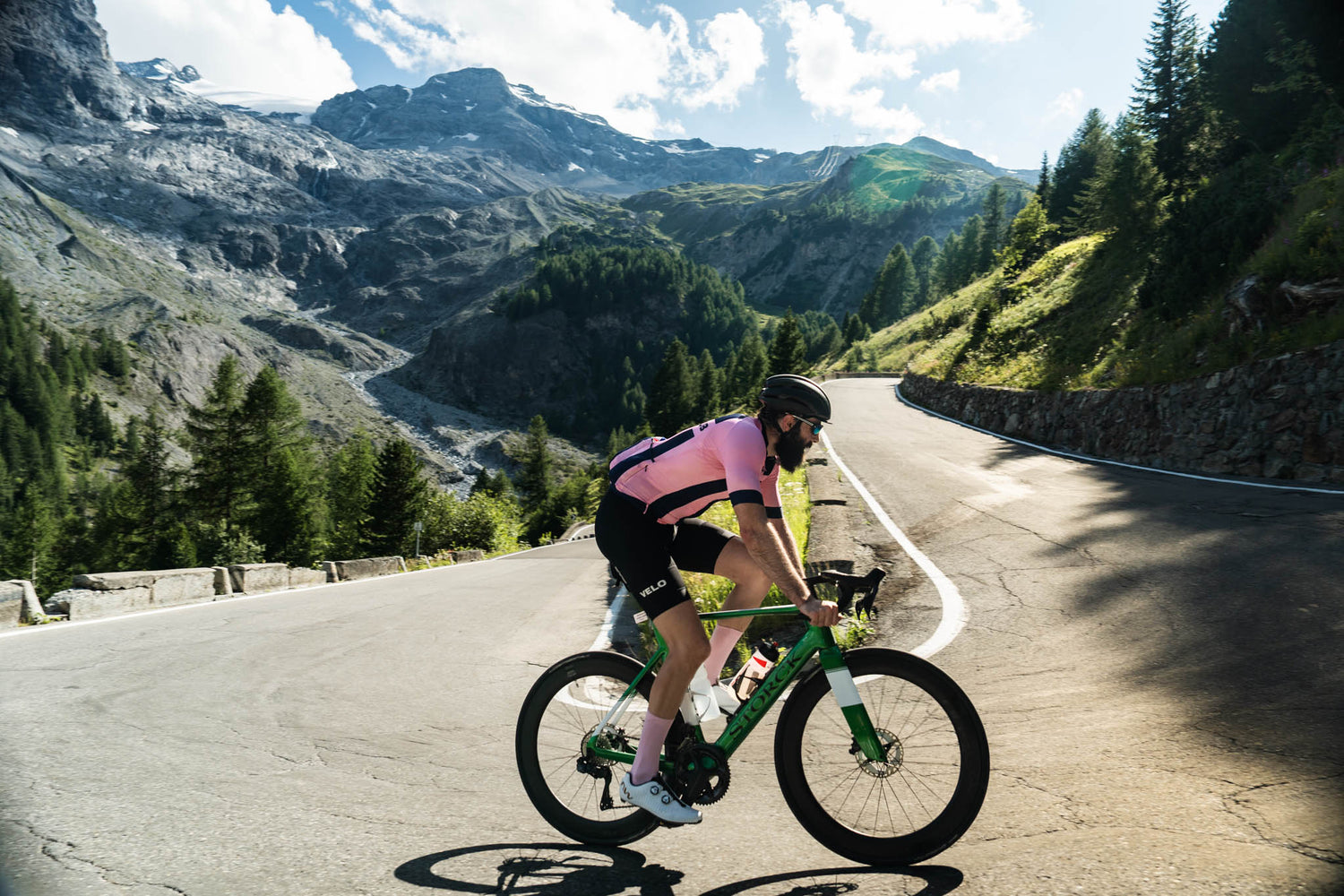 Auf dem Bild: Mo bei seiner Leidenschaft mit dem Fahrrad - von München zum Stilfser Joch in Südtirol bei einer der letzten Kehren auf 2.700 Hm