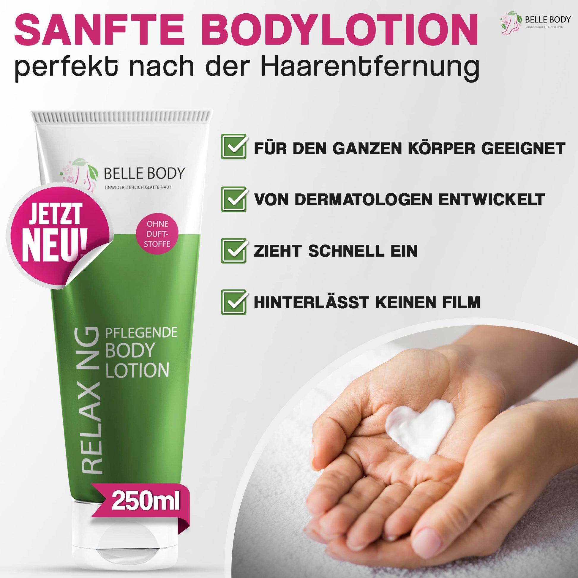 Eine Tube der Belle Body Body Lotion beinhaltet 250ml.