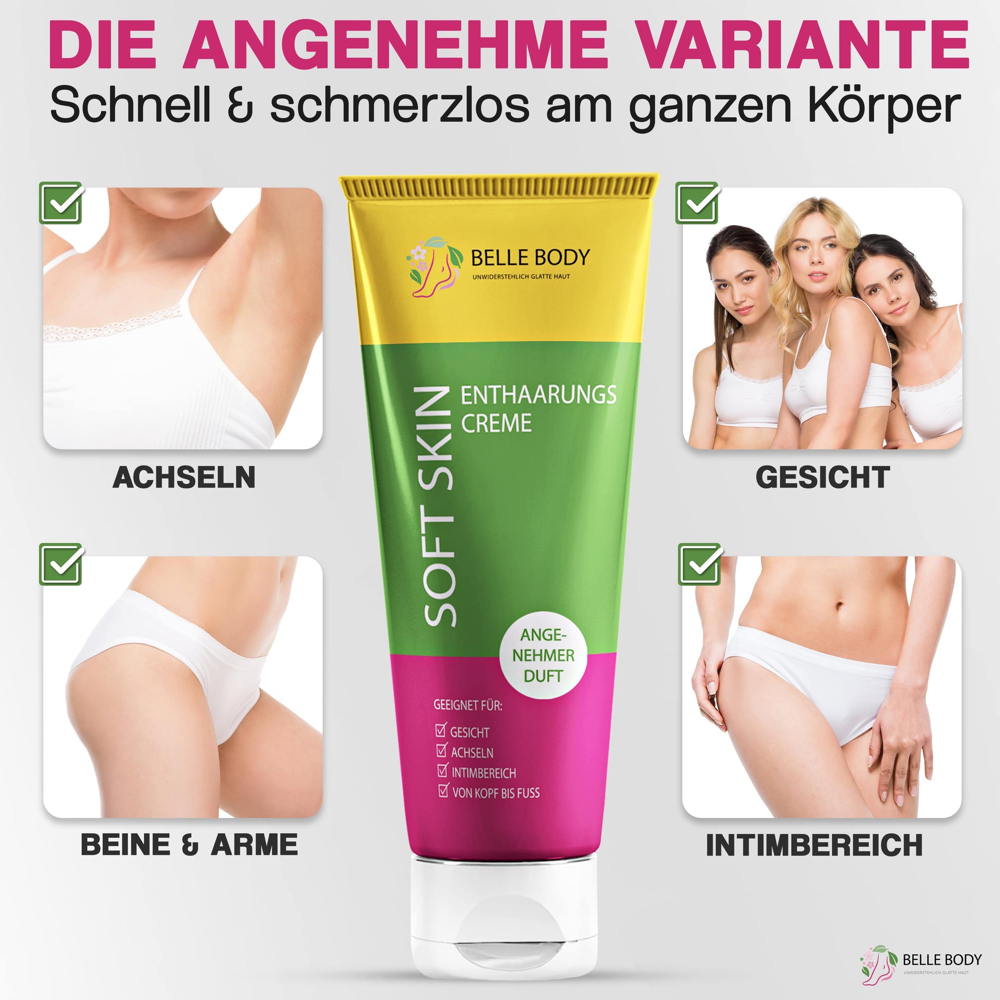 Es wird empfohlen, die Belle Body Enthaarungscreme 1x pro Woche zu verwenden. Bei Bedarf kann sie auch häufiger genutzt werden.