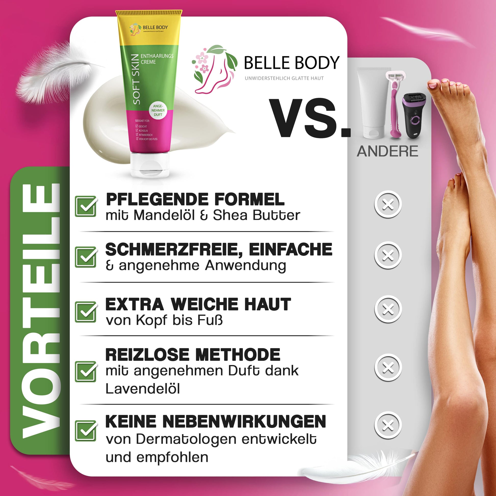 We vinden zelfs kleine visuele oneffenheden vaak vervelend en verminderen gevoel van welzijn. We bedekken gezichtshaar of verbergen puistjes in de bikinilijn op onze volgende date. Dankzij onze ontharingscrème is dat nu verleden tijd! Onze eenvoudige behandeling Verwijdert binnen 10 minuten haar van elk deel van het lichaam. Krijg een gladde en soepele huid en je weer helemaal op je gemak voelen.